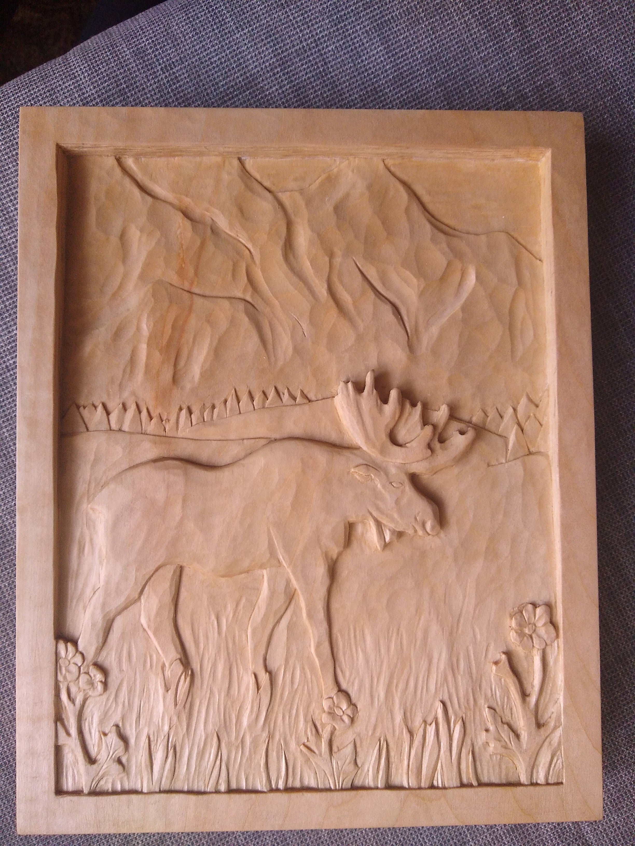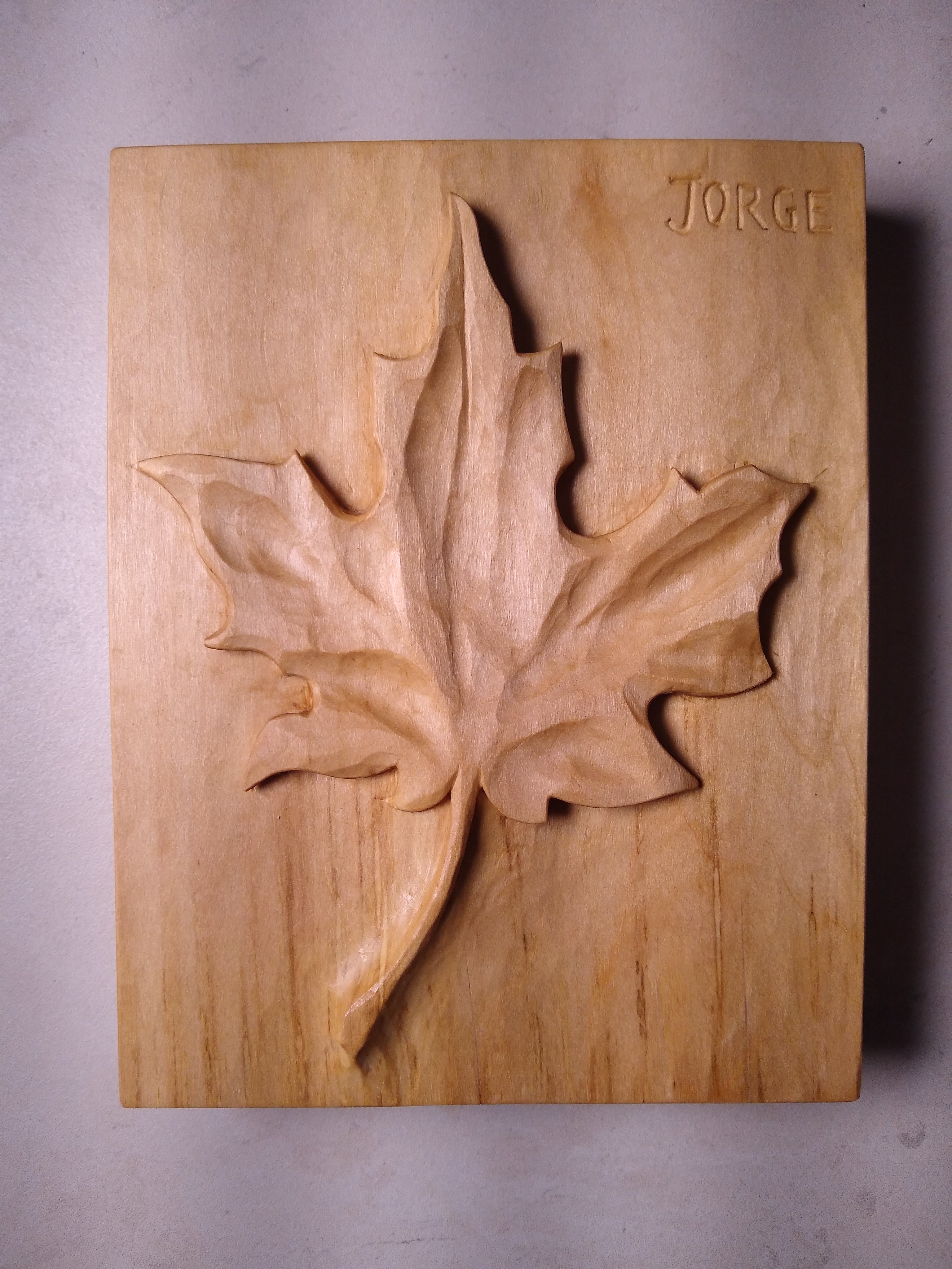 Along with Shaker boxes and furniture, I complete small custom carving commissions by hand, with gouges and chisels. I do all the drawing and drafting myself, and I love working with clients to figure out a design that's exactly what they're looking for. Some of my carving work is pictured below.
